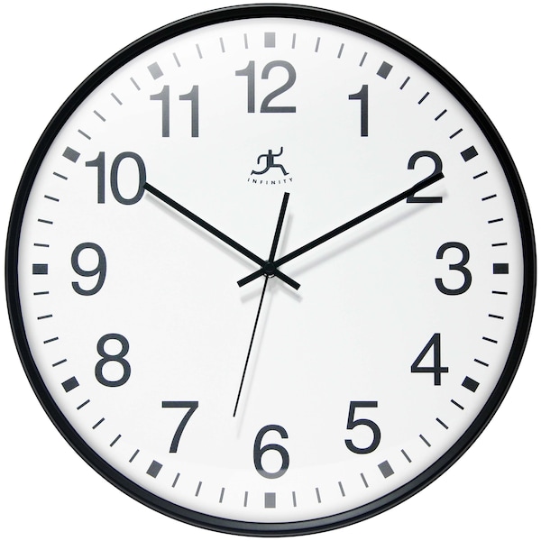 15 in Round Wall Clock, Black Plastic Case, Second Hand