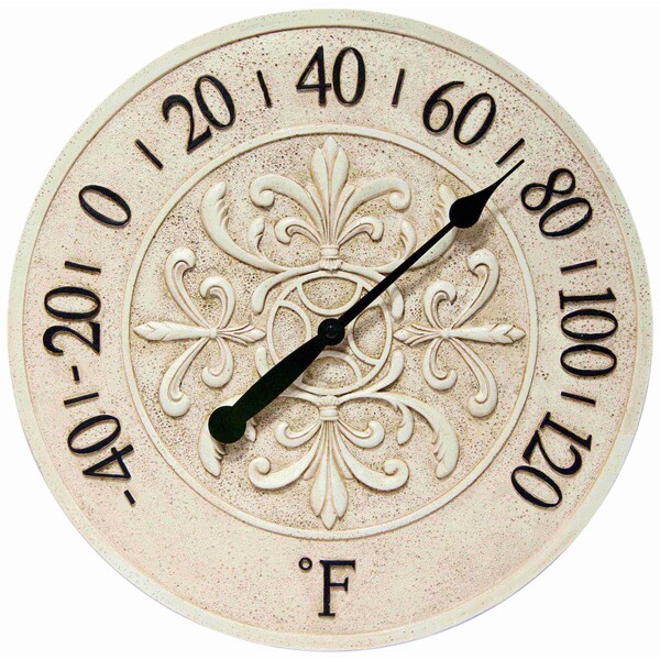 Blanc Fleur - 15in Round Wall Thermometer, White Finish Case, Open Face, Water Resistant