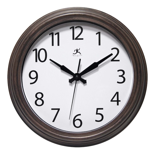 Old world charm meets modern minimalism in the streamlined design of our 12” Fabrizio wall clock. To give the battery-operated clock a touch of elegance mixed with just a hint of traditionalism; it has been thoroughly stylized with a weathered finish that renders an antiqued shade of dark brown. Black hands and a solid white face round out the clock design to keep things classic and decoratively versatile. Made out of molded resin, the wall clock can be displayed either indoors or outdoors. Hang it on the wall of your foyer, entry room, kitchen, dining room, patio, porch or garden.