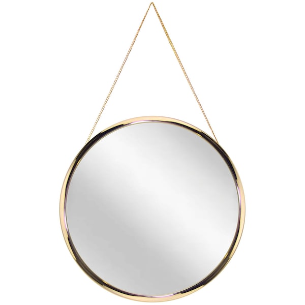 17.5 in Decorative Round Wall Mirror, with a Gold Frame and Metal Chain
