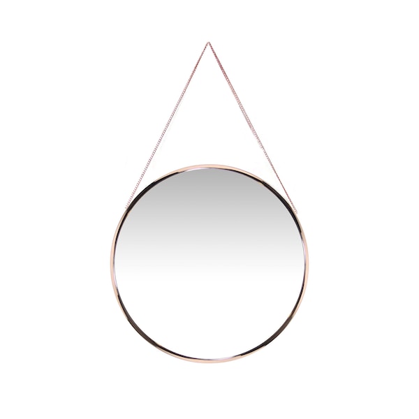 17.5 in Decorative Round Wall Mirror, with a Rose Gold Frame and Real Metal Chain