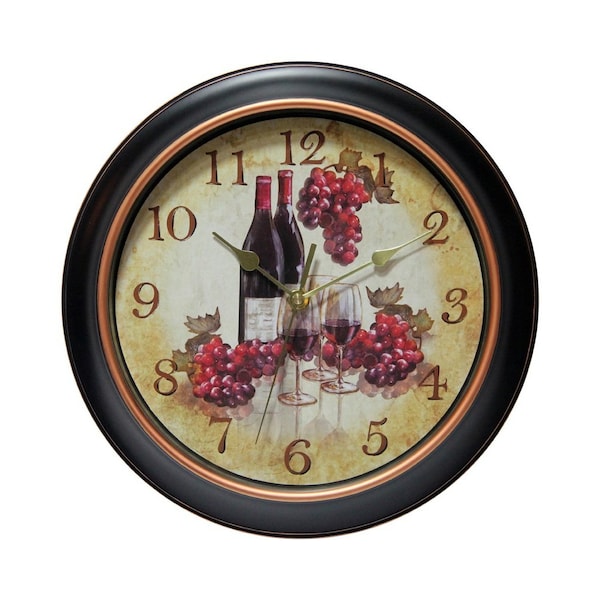 Pinot - 12" Round Black Finish Case w/ Rose Gold Accent Bezel Wine and Grape Design Dial