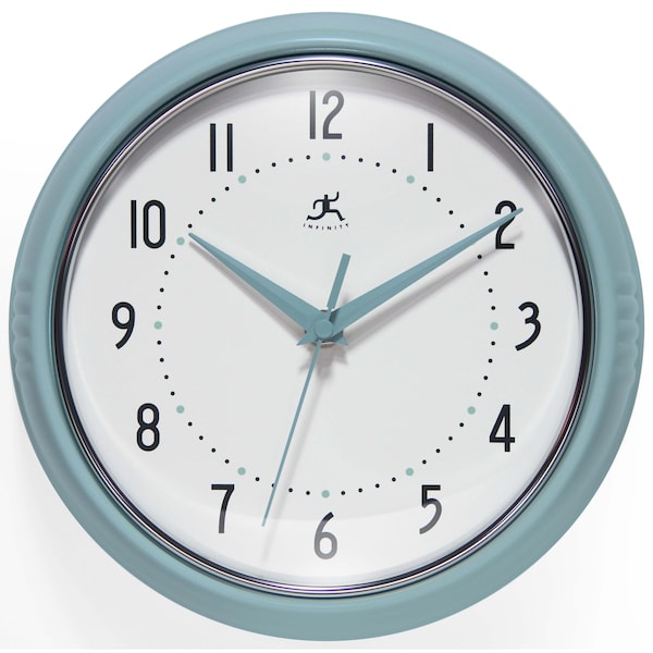 Retro Round Baby Blue Wall Clock, 9.5 in.