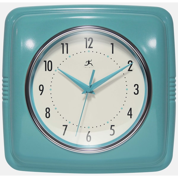 Infinity Instruments 9.25 in. Square Retro Turquoise home essential wall clock can give your home that retro feel. With a square designed case this amazing clock will bring you back in time.