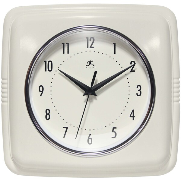 Infinity Instruments 9.25" Square Retro Ivory home essential wall clock can give your home that retro feel. With a square designed case this amazing clock will bring you back in time.