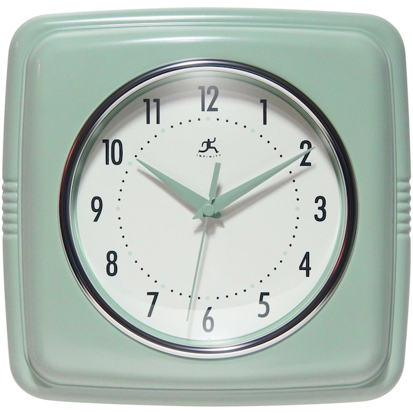 Infinity Instruments 9.25" Square Retro Sage Green home essential wall clock can give your home that retro feel. With a square designed case this amazing clock will bring you back in time.