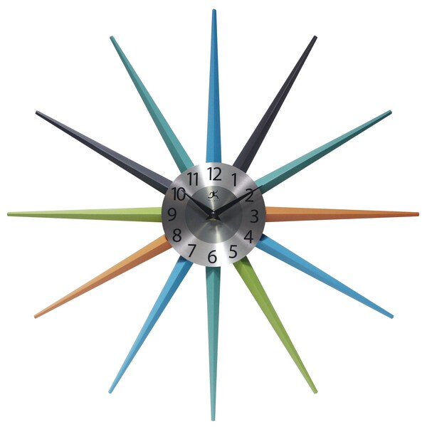 20.5 in Starburst Wall Clock, Multicolor Wooden Rays, Black Metal Hands, Brushed Silver Dial
