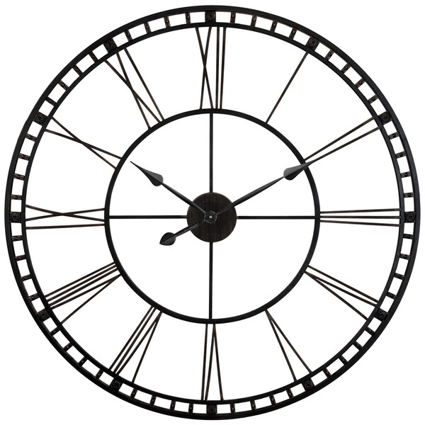 Large and stately in appearance, the Tower XXL Black is an oversized indoor wall clock that commands attention. At 39 in., the Tower XXL features a black metal frame and Roman numerals with matching metal hands on an open face design. This oversized wall clock also features a high torque movement for accurate timekeeping. With its sawtooth hanging mechanism, the Tower XXL can be easily hung in your living room, entertainment area, bedroom or any large wall that need an infusion of style. Please note that coloration may vary by clock due to the hand-painting process employed at the production level.