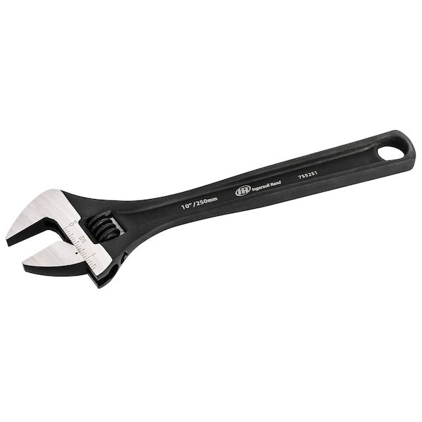 Ingersoll Rand® adjustable wrenches are built from drop-forged chrome vanadium steel and finished with industrial-grade Black Phosphate for maximum durability and corrosion resistance. Wrench jaws have SAE and metric size scales for quick reference and feature a wide jaw design for added range and application. All wrenches are long-pattern for extra reach and thick I-beam handles add rigidity and grip and take the sting out of high torque applications. • OVERALL LENGTH: 10 Inches • FINISHED: Premium Chrome Vanadium Steel Contruction with Industrial Grade Black Phosphate Finish and Extra Long Pattern for Added Torque • FUNCTIONAL: Wide Jaw Design for Increased Working Range; Laser Etched Size Markeings in both SAE and Metric • QUALITY BUILT: Meets or Exceeds ANSI Standards • AVAILABLE IN: 8 Inch, 10 Inch, and 12 Inch Lengths • COLOR: Black Phosphate Finish • MATERIAL: Chrome Vanadium Steel