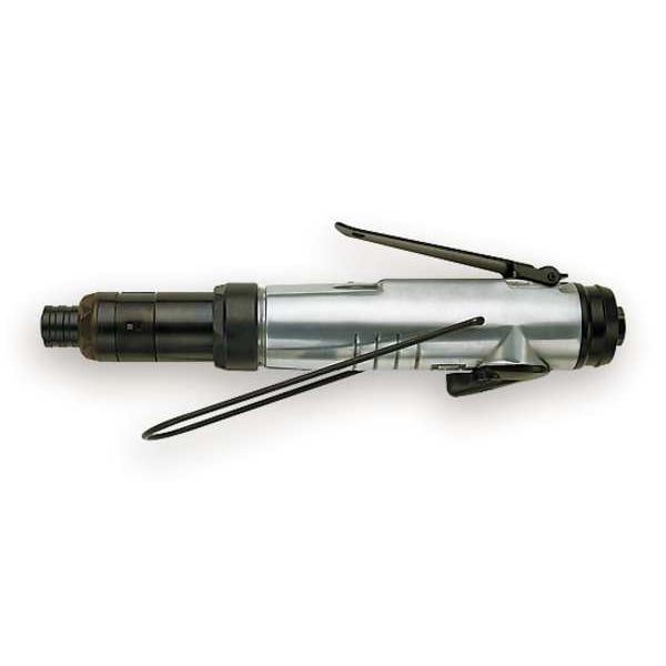 Screwdriver, In-Line Body Style - Air Tools, Torque Range Soft Draw 13 to 75 in-lb, Max. Torque 75 in-lb, Clutch Type - Air Screwdriver Adjustable Cushion, Lever Throttle Type - Air Screwdrivers, Free Speed 1,000 RPM, Industrial Duty Duty Cycle - Air Tools, Air Inlet Size - Air Tools 1/4 in NPT, 4.00 Average CFM @ 15 Second Run Time, 16.0 CFM @ Full Load, Required Pressure 90 psi, Min. Hose Size 1/4 in, Overall Length 10 3/4 in, Hex Bit 1/4 in, Reversible Operation