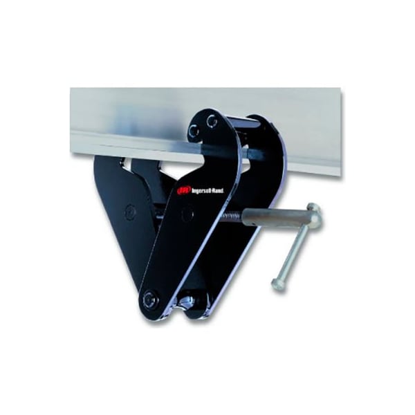 Ingersoll rand beam clamp bc-3 6600 lb. Capacity beam clamps provide a temporary or permanent mount to a wide range of tapered or flat beams. They are the ideal rigging device for lifting, pulling or suspending loads. These units have been designed and verified to achieve a minimum design factor of 5:1 for vertical lifting with powered or manual hoists or winches, meeting asme b30.16 and asme b30.7. Quick and simple installation is achieved without tools. Units accommodate hook-mounted hoist or load blocks with minimal loss of headroom. The clamp jaws are designed to reduce beam stress by applying the load inside of the flange edge. features: quick installation by hand low-headroom design adjusts to fit a wide range of flat or tapered beams meets asme b30.16 for use with powered or manual hoists each unit is serialized, supplied with a test certificate and manual metric rated for vertical lifting or in-line pulling at 2200 lbs (1000 kg) per ton