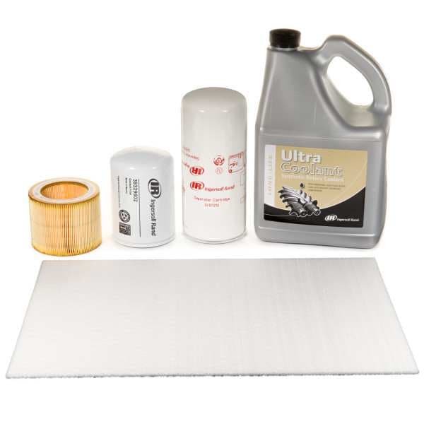 Rotary Screw Ultra Coolant Maintenance Kit, Compatible with Brand Ingersoll-Rand, Type Maintenance Kit, Compatible Grainger Part Number 1ZPR3, 1ZPR4, 1ZPR5, 1ZPR6, 1ZPR7, 1ZPR8, 1ZPR9, 1ZPT1, 1ZPT2, 1ZPT3, 1ZPT4, 1ZPT5, 1ZPT6, 1ZPT7, 4RU64, 4RU65, 4RU66, 4RU67, 4RU68, 4RU69, 4RU70, 4RU71, 6WA78, 6WA79, 6WA80, 6WA81, 6WA82, 6WA83, For Use With Air Compressors, Includes 5L of Ultra Coolant Lubricant, Air Filter Element, Oil Filter Element, Pre-filter Pad, Separator Element