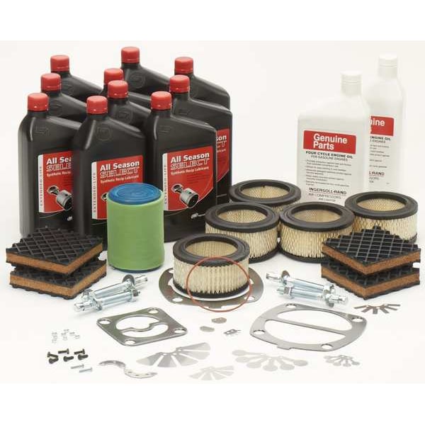 Warranty Kit, Compatible with Brand Ingersoll-Rand, Type Air Compressor Maintenance Kit, Compatible Manufacturer Part Number SS6, For Use With Reciprocating Air Compressors, Includes (2) 4-Cycle Engine Oil, (2) Air Filter Element Replacements, (4) Quart All-Season Select Lubricant, (1) Engine Air Filter Element, (1) Engine Oil Filter Element, (1) Engine Pre-Cleaner, MSDS Sheet and Decal