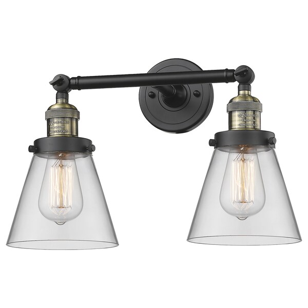 Small Cone 2-100 Watt 16 Inch Black Antique Brass Bathroom Fixture With Clear Glass And Solid Brass 180 Degree Adjustable Swivels