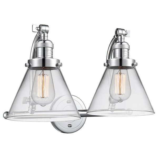2 Light Vintage Dimmable Led Large Cone 18 Inch Bathroom Fixture