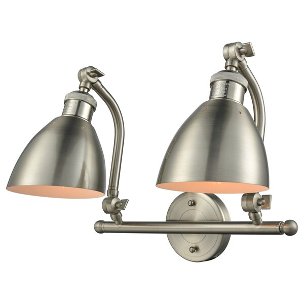 Salem 2-Vintage Dimmable Led 18 Inch Brushed Satin Nickel Bathroom Fixture With Brushed Satin Nickel Salem Shades And Solid Brass 180 Degree Adjustable Swivels