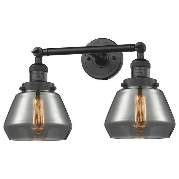 Fulton 2-Vintage Dimmable Led 16.5 Inch Black Bathroom Fixture With Smoked Glass And Solid Brass 180 Degree Adjustable Swivels