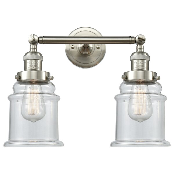 Canton 2-Vintage Dimmable Led 16.5 Inch Brushed Satin Nickel Bathroom Fixture With Clear Glass And Solid Brass 180 Degree Adjustable Swivels