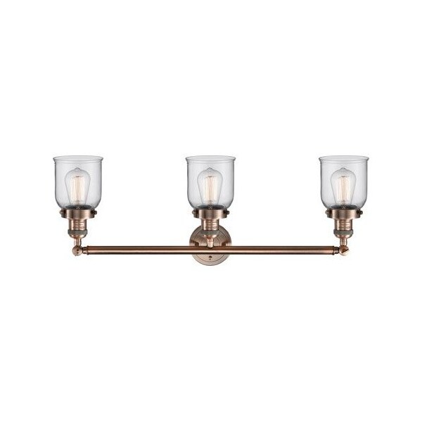 Small Bell 3-100 Watt 30 Inch Antique Copper Adjustable Bathroom Fixture With Clear Glass