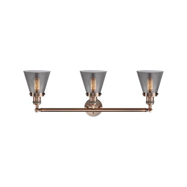Small Cone 3-100 Watt 30 Inch Antique Copper Adjustable Bathroom Fixture With Smoked Glass