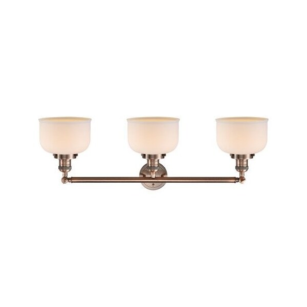Large Bell 3-100 Watt 32 Inch Antique Copper Adjustable Bathroom Fixture With Matte White Cased Glass