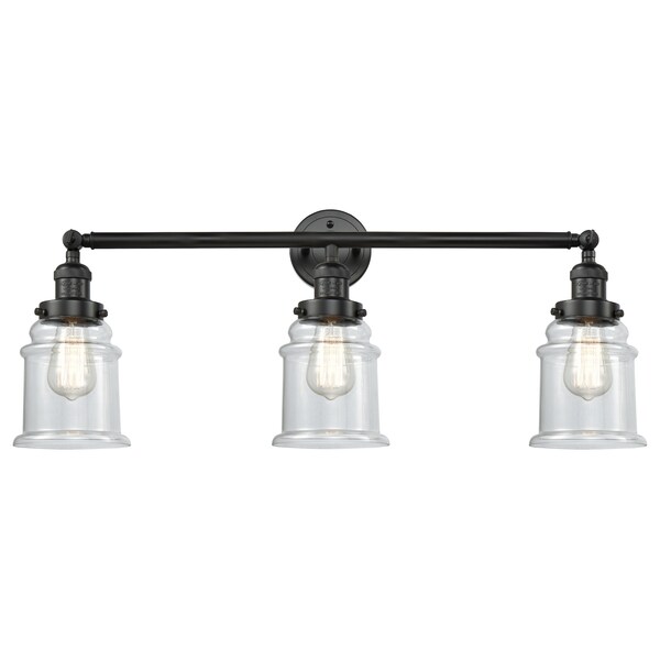Canton 3-100 Watt 30 Inch Black Adjustable Bathroom Fixture With Clear Glass