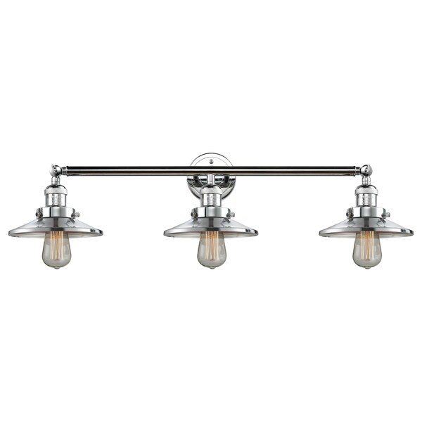 Railroad 3-100 Watt 32 Inch Polished Chrome Adjustable Bathroom Fixture With Polished Chrome Railroad Shades