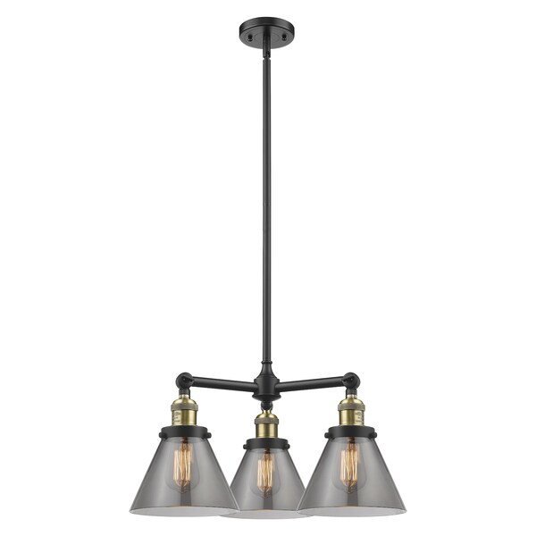 Large Cone 3-100 Watt 22 Inch Black Antique Brass Chandelier With Smoked Glass And Solid Brass Hang Straight Swivel