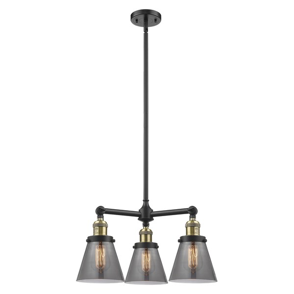 Small Cone 3-100 Watt 19 Inch Black Antique Brass Chandelier With Smoked Glass And Solid Brass Hang Straight Swivel