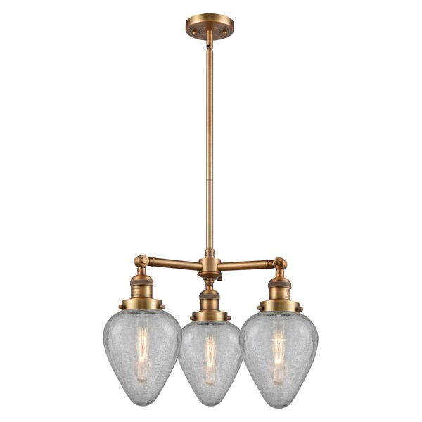 3 Light Adjustable Geneseo 26In. Brushed Brass Chandelier With Clear Crackle Glass