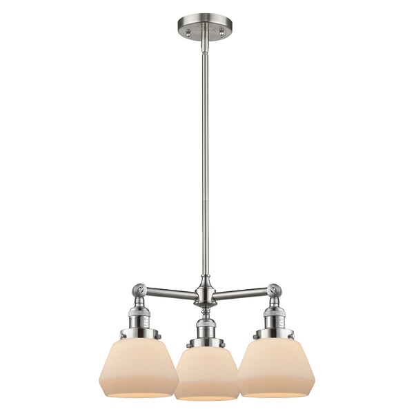 3 Light Adjustable Fulton 22In. Brushed Satin Nickel Chandelier With Matte White Cased Glass