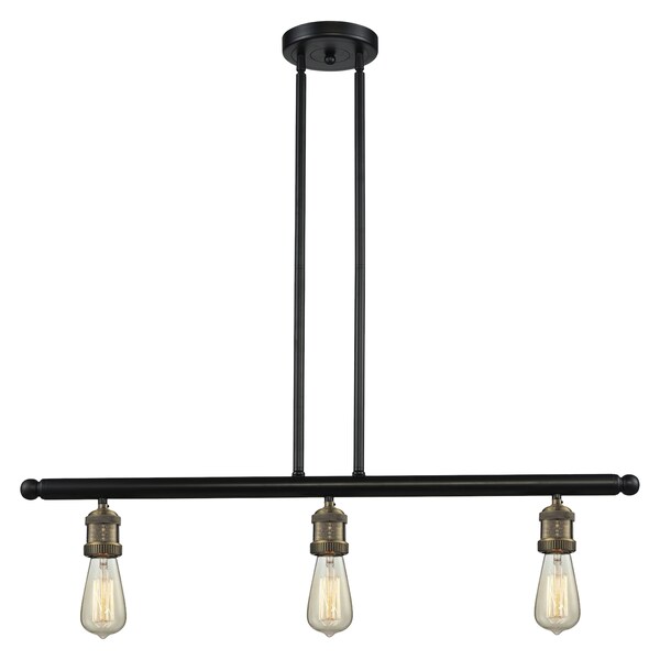 Bare Bulb 3-100 Watt 36 Inch Black Antique Brass Island Light With Solid Brass Hang Straight Swivels