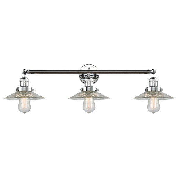 Halophane 3-Vintage Dimmable Led 32 Inch Polished Chrome Adjustable Bathroom Fixture With Halophane Glass