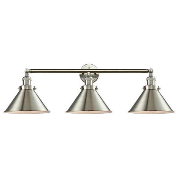 Briarcliff 3-Vintage Dimmable Led 34 Inch Brushed Satin Nickel Adjustable Bathroom Fixture With Brushed Satin Nickel Briarcliff Shades