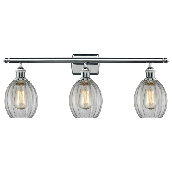 Eaton 3-Vintage Dimmable Led 26 Inch Polished Chrome Bathroom Fixture With Clear Fluted Glass And Solid Brass 180 Degree Adjustable Swivels