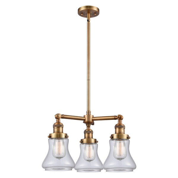 Bellmont 3-Vintage Dimmable Led 23 Inch Brushed Brass Chandelier With Clear Glass And Solid Brass Hang Straight Swivel