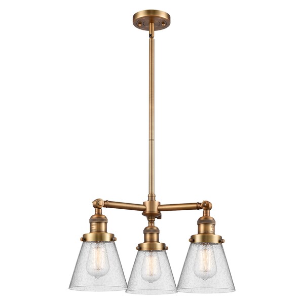 Small Cone 3-Vintage Dimmable Led 19 Inch Brushed Brass Chandelier With Seedy Glass And Solid Brass Hang Straight Swivel
