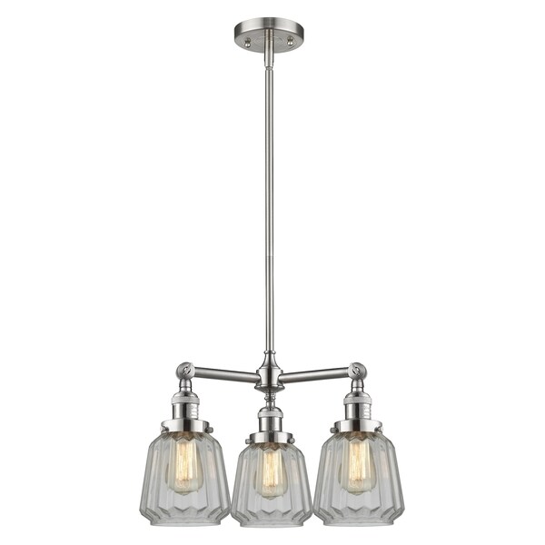 Chatham 3-Vintage Dimmable Led 24 Inch Brushed Satin Nickel Chandelier With Clear Fluted Glass And Solid Brass Hang Straight Swivel
