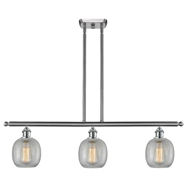 Belfast 3-Vintage Dimmable Led 6 Inch Brushed Satin Nickel Island Light With Clear Crackle Glass And Solid Brass 90 Degree Hang Straight Swivels