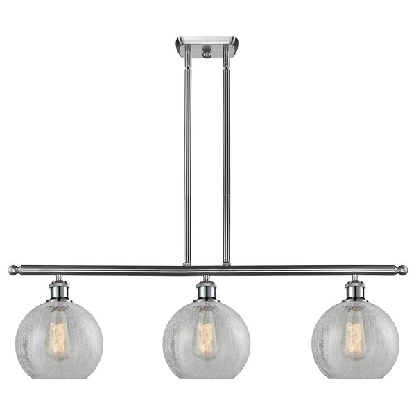Athens 3-Vintage Dimmable Led 42 Inch Brushed Satin Nickel Island Light With Clear Crackle Athens Solid Brass 90 Degree Hang Straight Swivels