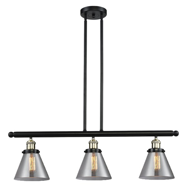 Large Cone 3-Vintage Dimmable Led 7.75 Inch Black Antique Brass Island Light With Smoked Glass And Solid Brass Hang Straight Swivels