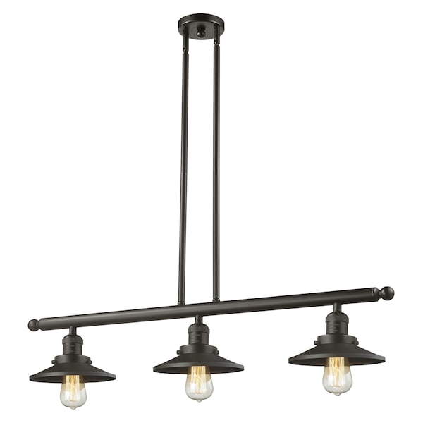 Railroad 3-Vintage Dimmable Led 36 Inch Oidimmable Led Rubbed Bronze Island Light With Oidimmable Led Rubbed Bronze Railroad Shades And Solid Brass Hang Straight Swivels