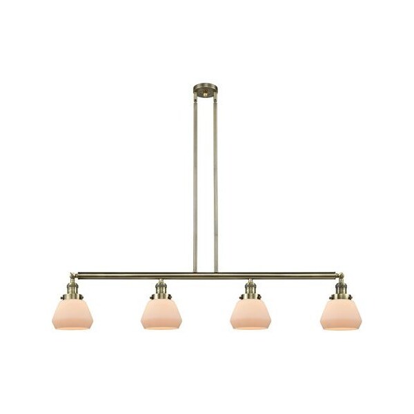 Fulton 4-100 Watt 48 Inch Antique Brass Island Light With Matte White Cased Glass And Solid Brass Hang Straight Swivels