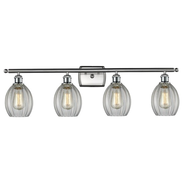 Eaton 4-Vintage Dimmable Led 36 Inch Brushed Satin Nickel Bathroom Fixture With Clear Fluted Glass