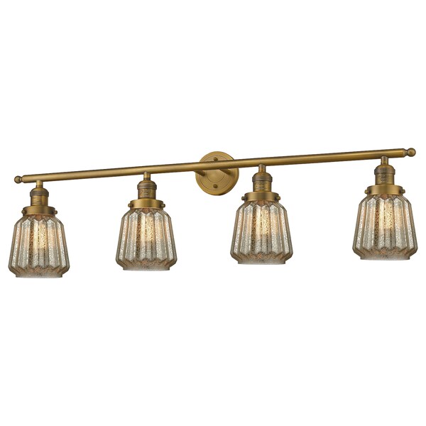 Chatham 4-Vintage Dimmable Led 42.25 Inch Brushed Brass Bathroom Fixture With Mercury Fluted Glass
