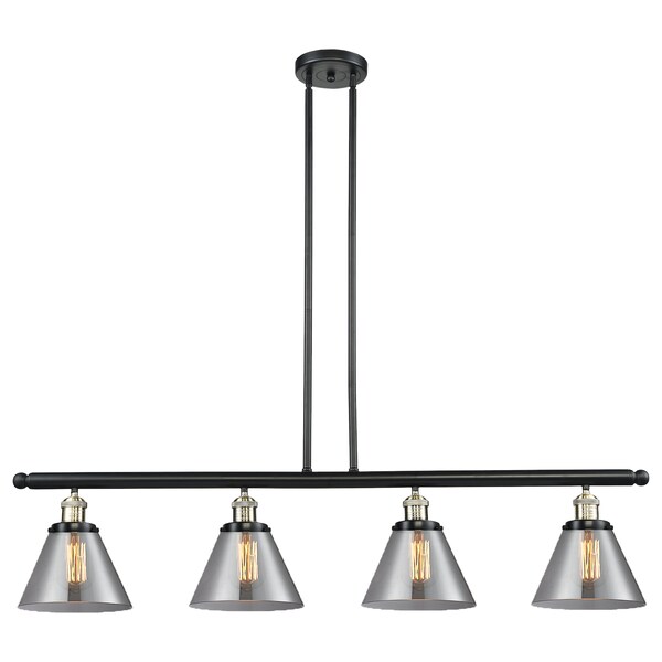 Large Cone 4-Vintage Dimmable Led 48 Inch Black Antique Brass Island Light With Smoked Glass And Solid Brass Hang Straight Swivels
