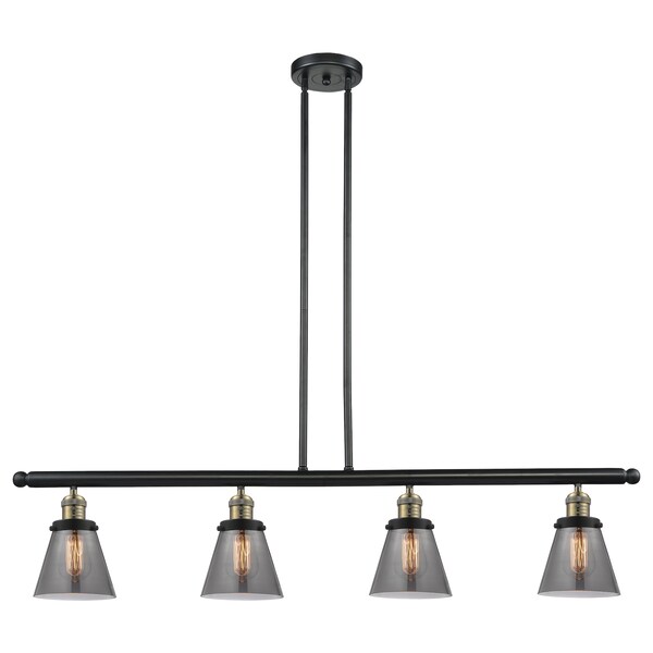 Small Cone 4-Vintage Dimmable Led 48 Inch Black Antique Brass Island Light With Smoked Glass And Solid Brass Hang Straight Swivels