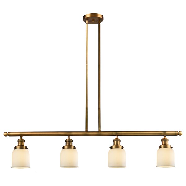 Small Bell 4-Vintage Dimmable Led 48 Inch Brushed Brass Island Light With Matte White Cased Glass And Solid Brass Hang Straight Swivels