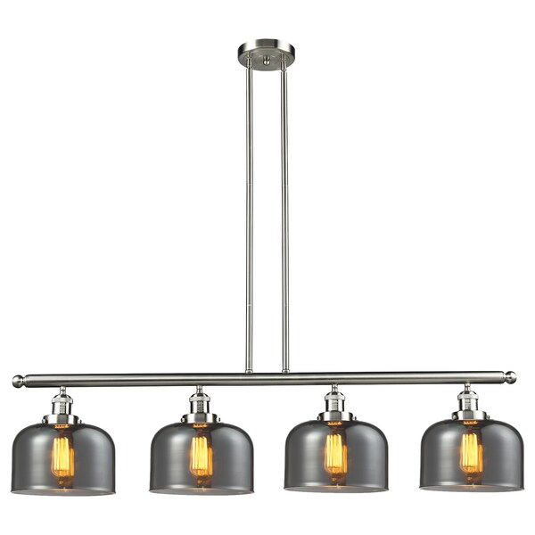 Large Bell 4-Vintage Dimmable Led 48 Inch Brushed Satin Nickel Island Light With Smoked Glass And Solid Brass Hang Straight Swivels