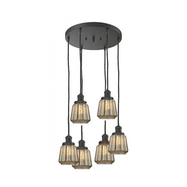 Chatham 6-100 Watt 14 Inch Antique Brass Multi-Pendant With Mercury Fluted Glass